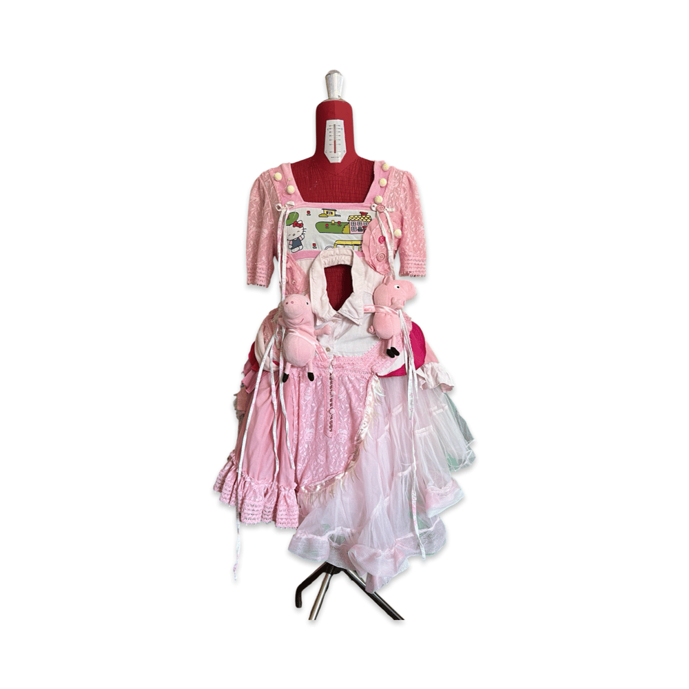 This piece combines lace, cotton, tulle and patchwork fabrics to create a layered sculptural silhouette inspired by kawaii and doll aesthetics.